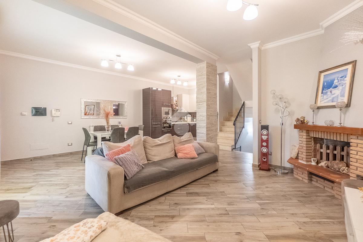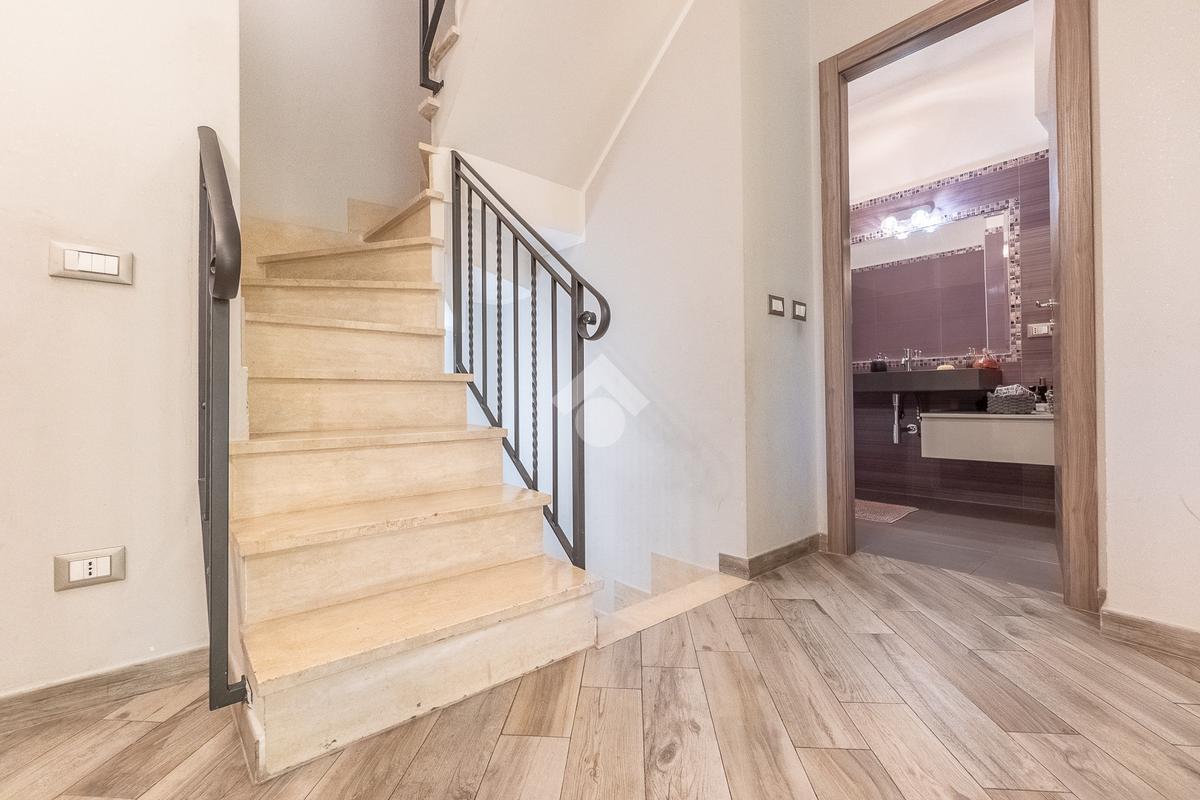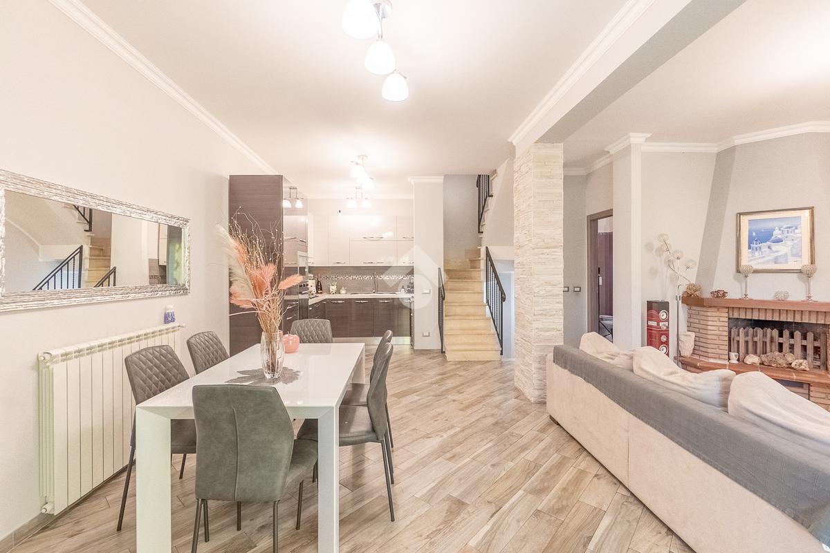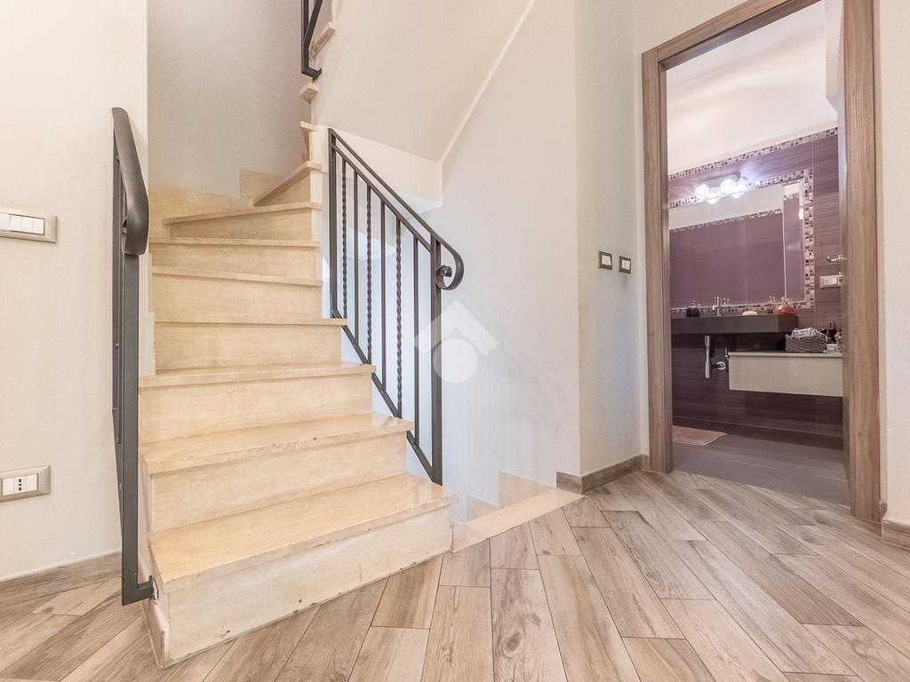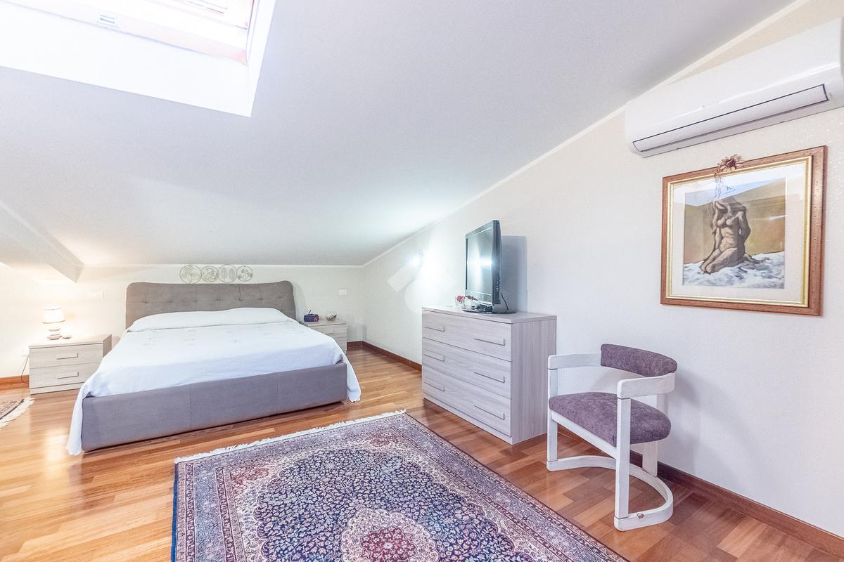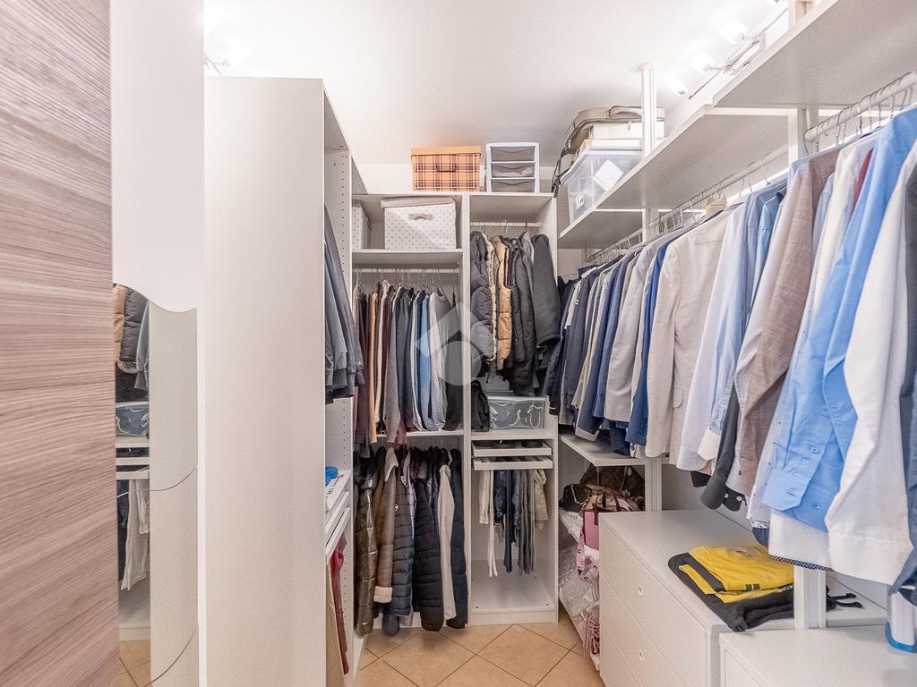 Al piano superiore vi è la camera da letto matrimoniale con secondo bagno. Attraverso una comoda scala si accede poi al piano seminterrato con disimpegno, camera con cabina armadio ed ulteriore bagno.