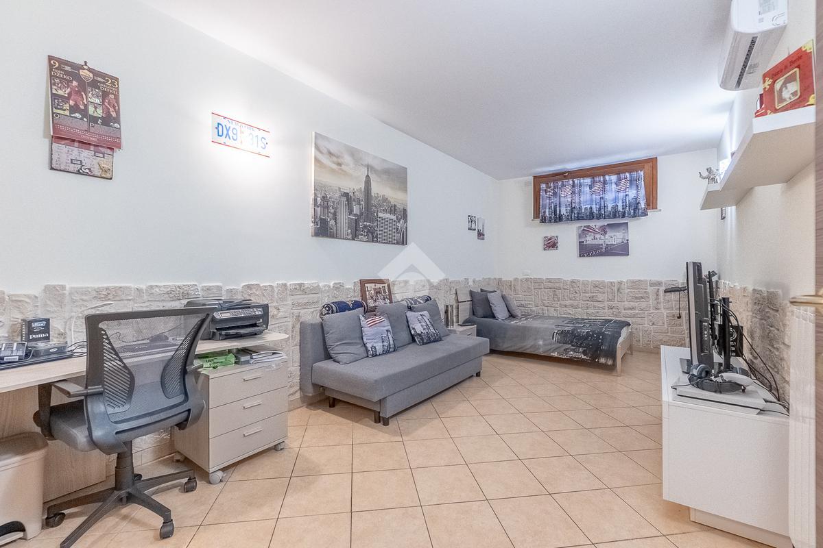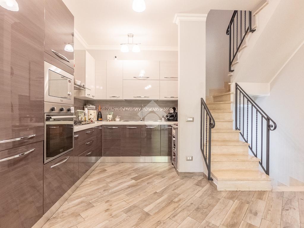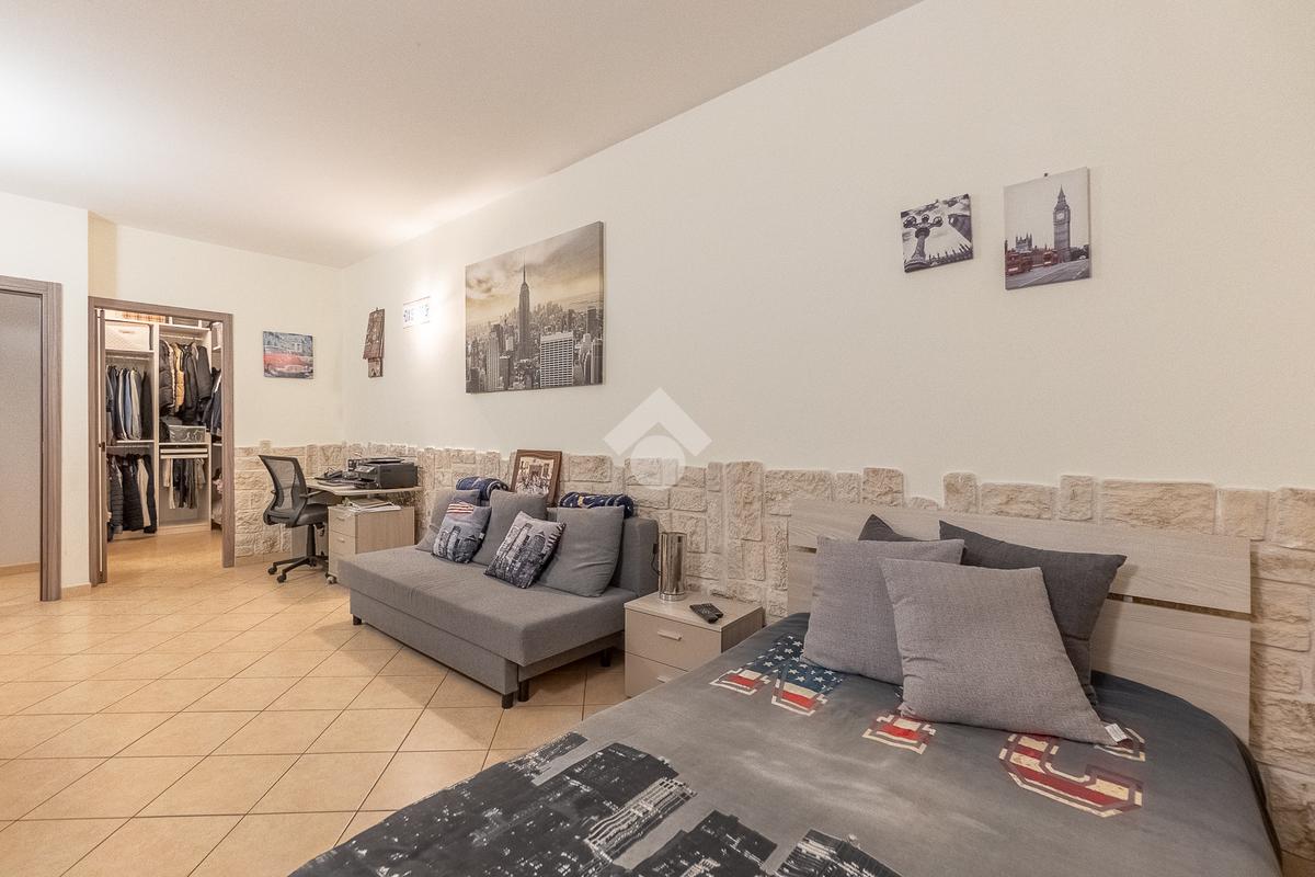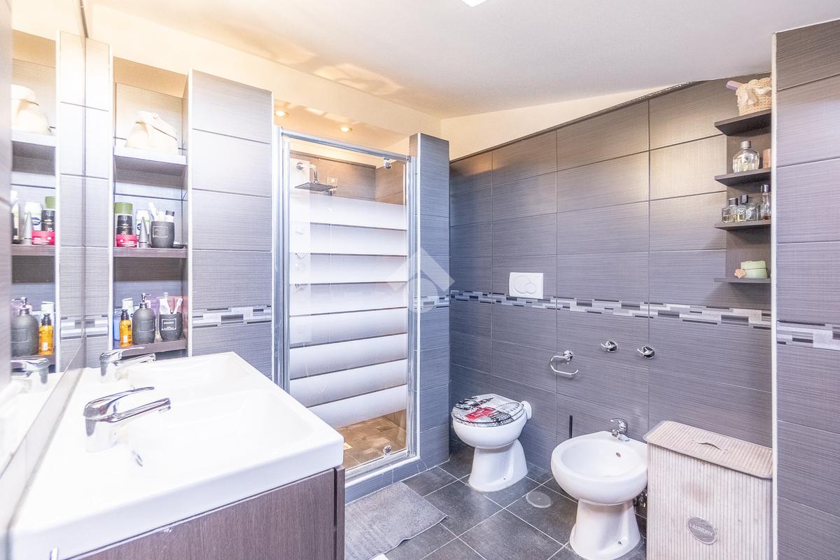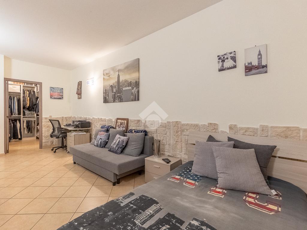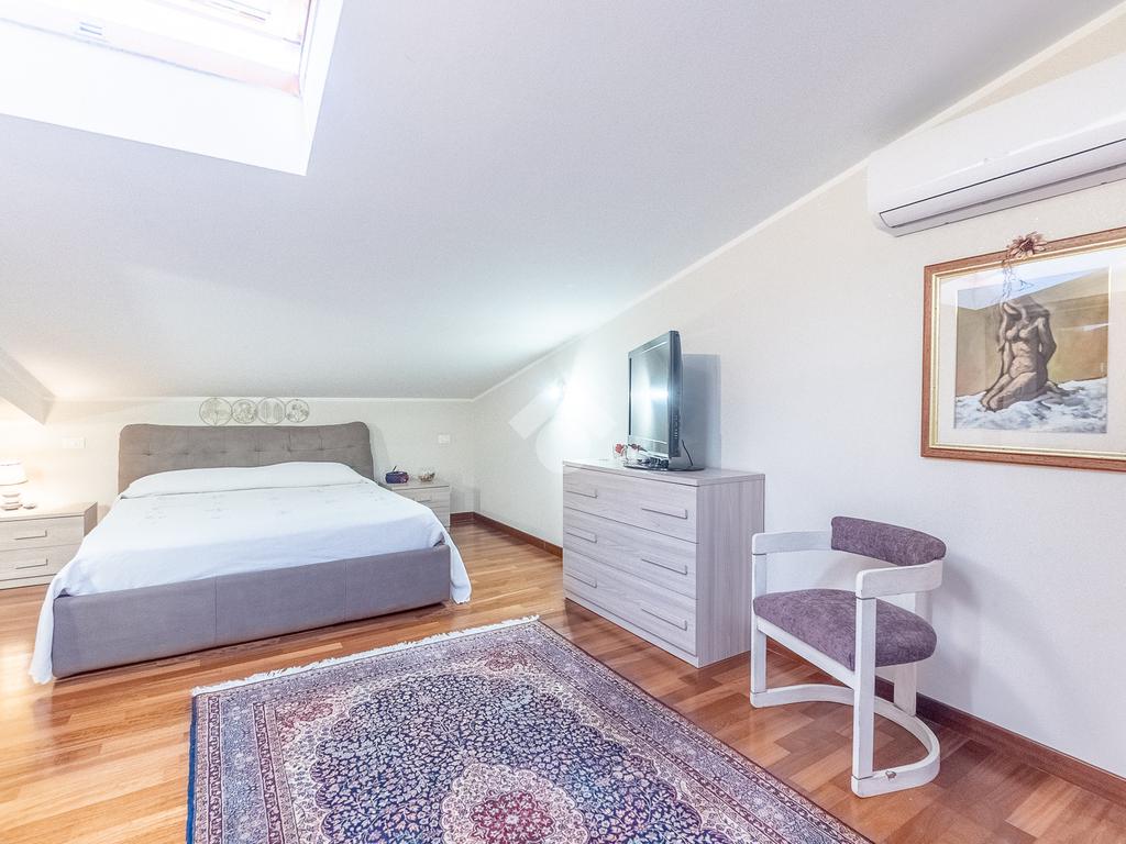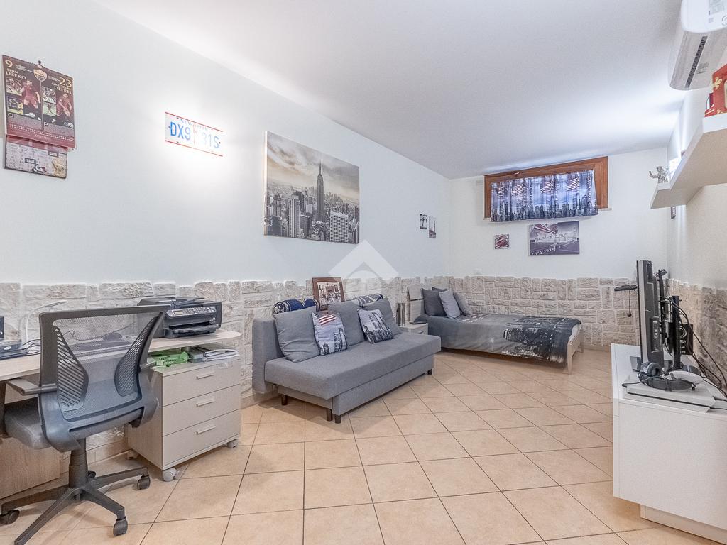 Al piano superiore vi è la camera da letto matrimoniale con secondo bagno. Attraverso una comoda scala si accede poi al piano seminterrato con disimpegno, camera con cabina armadio ed ulteriore bagno.