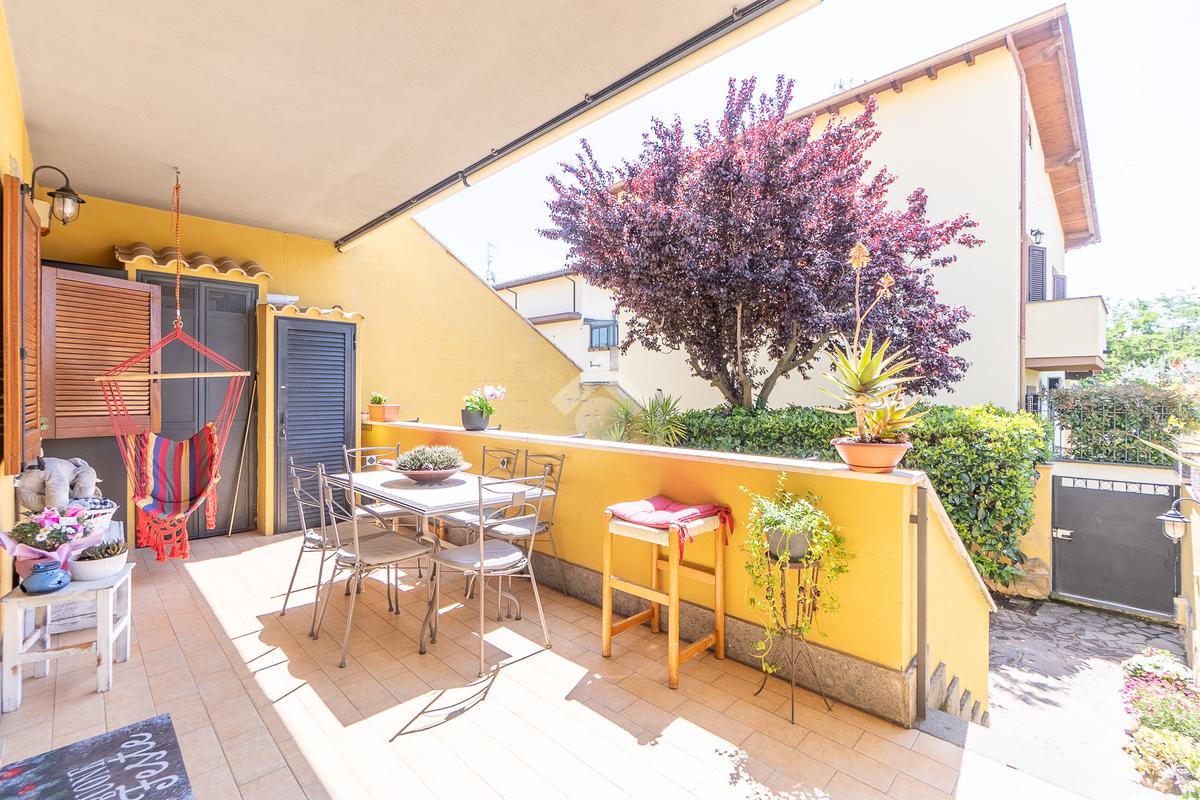 Proponiamo in vendita una porzione di villa di recente costruzione con giardino, portico e box auto.